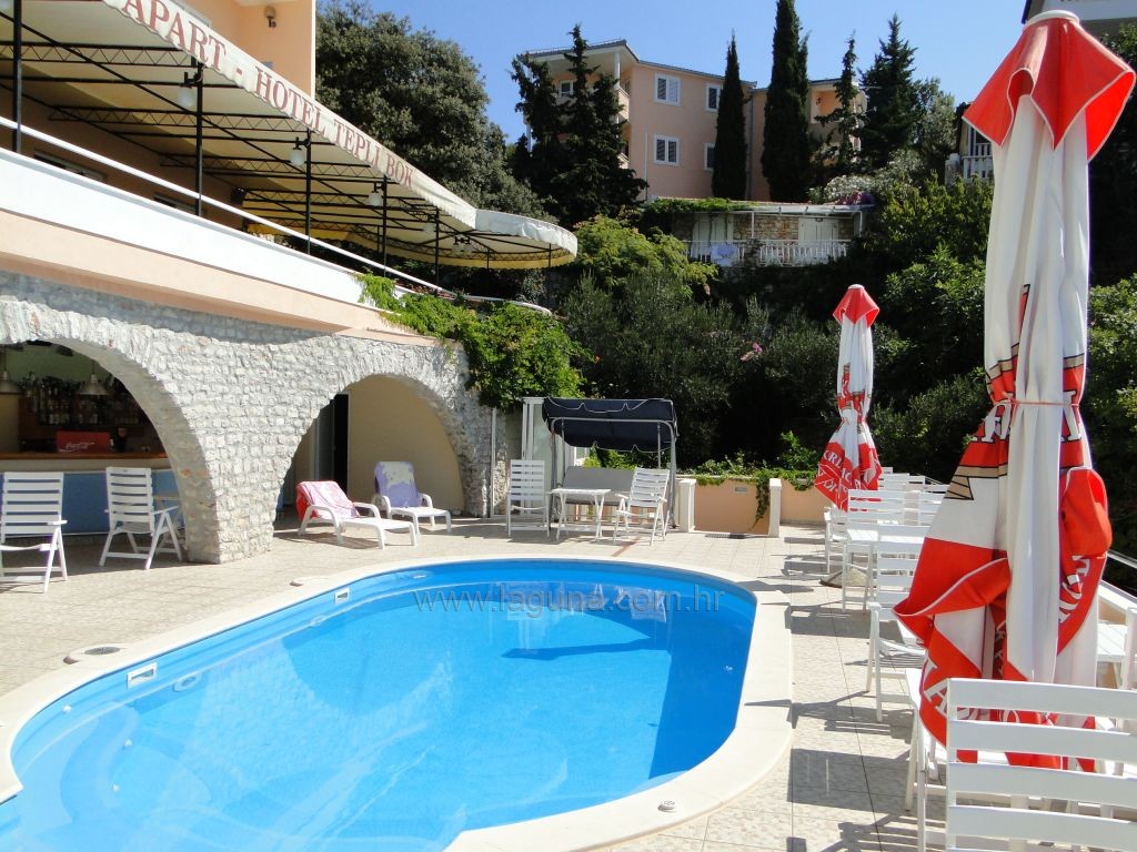 Die Gäste, die Haus ROZA TB besuchen können den Außenpool und Liegestühlen am Strand genießen