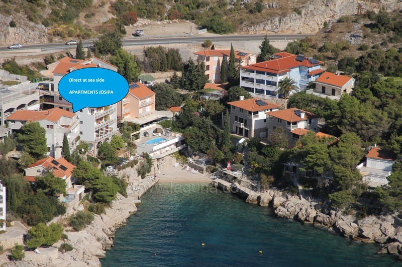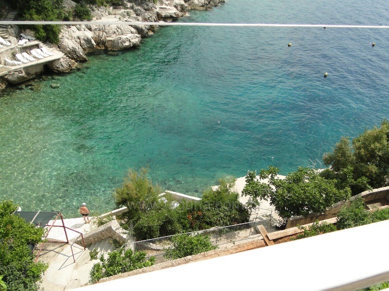 Beach near the apartment is rocky and concrete.