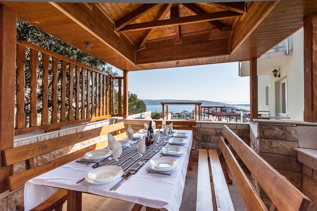 U prizemlju je kompletno opremljena kuhinja sa prostranim dnevnim boravkom . Na prvom katu su 3 dvokrevetne sobe , svaka sa vlastitim kupatilom i balkonom s pogledom na more . Drugi kat je isti po rasporedu sa 3 dvokrevetne sobe , 3 kupatila te svaka soba ima svoj balkon . Sve sobe i dnevni boravak su opremljeni klima uređajima.Gostima je na korištenje aparat za kavu, wi-fi, klima, hladnjak, mikrovalna, pećnica, perilica suđa, perilica robe, TV-SAT te za najmlađe play station 4 .